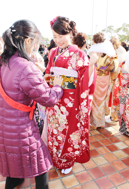 着崩れ直すボラ活動/成人式で「着付専科はな」
