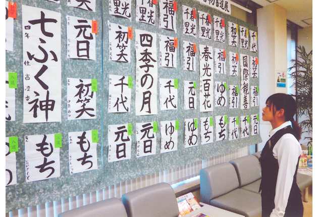 豊橋信金小池支店で豊城習字教室新春かきぞめ展