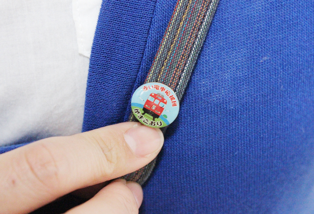市民まるごと赤い電車応援団のオリジナルピンバッジ