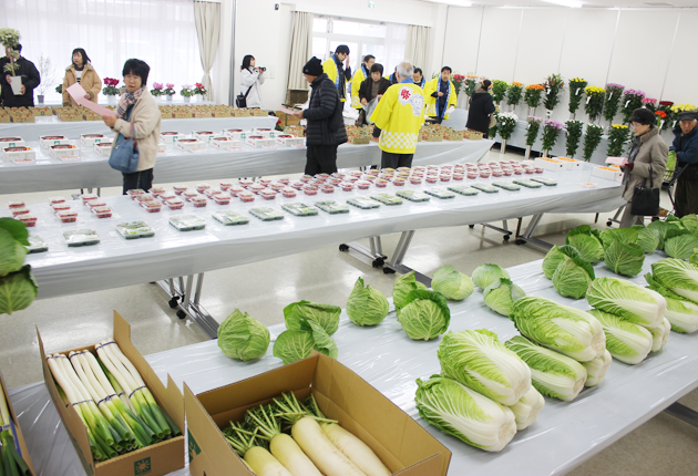 JAひまわり設立25周年記念「農産物品評会の展示即売会」は17日、グリーンセンター豊川(豊川市馬場町)で開かれた。豚汁の無料配布や花男子による花贈りイベントなども行われてにぎわった。 同JAは東部、西部、中部と3つのエリアに分かれており、...