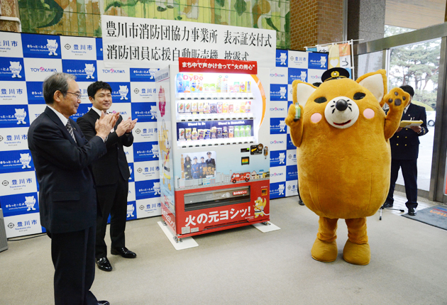 消防団協力事業所で豊川市/ラッピング自販機もお披露目/災害時は生活水無償提供も
