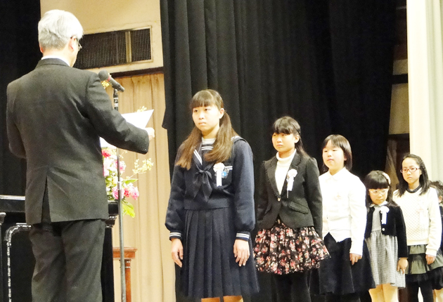 優秀作品の表彰状を受け取る児童・生徒