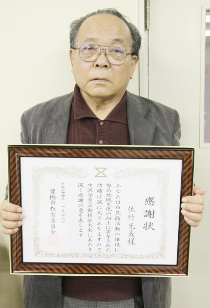 ひこばえ俳句会を主宰する豊橋市向山大池町の佐竹光義さん(84)は、長年にわたり市民館活動を推進した功績が認められ、1月に市公会堂で開かれた生涯学習活動推進大会において感謝状を贈られた。 俳句が盛んな熊本県小国町で生まれた佐竹さんは若いころ...