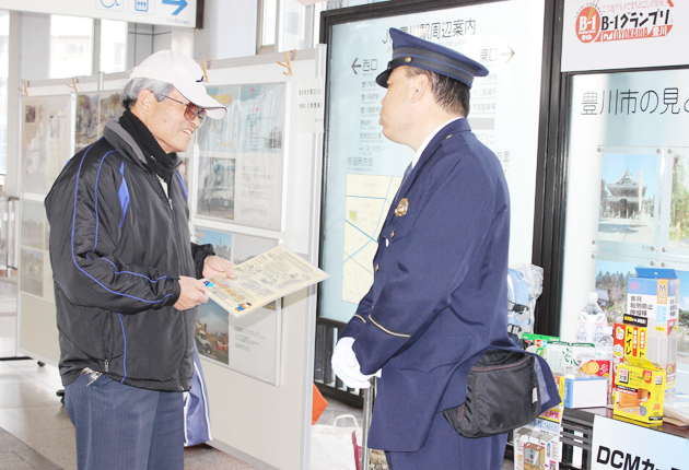 豊川署署員による啓発活動(JR豊川駅で)