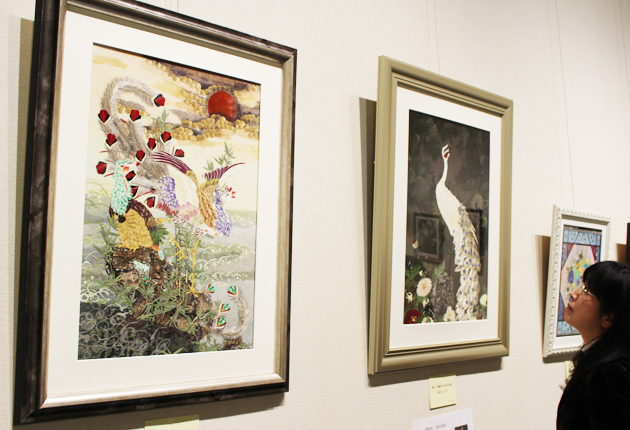 15日まで市美術博物館で東三河押し花アート倶楽部作品展/額装中心に52点並ぶ