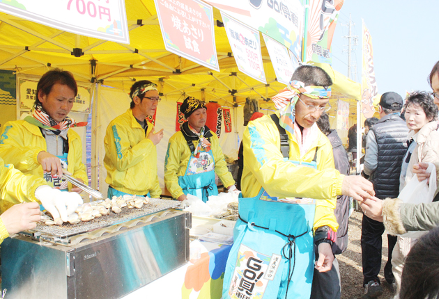 渥美半島で採れるアサリを全国にPRしようと、若手漁師の有志でつくる「GO!貝軍団(ごうかいぐんだん)」が発足。プロモーション第1弾として14日、田原市堀切町の菜の花まつりメーン会場で、焼きアサリの試食・販売会を開催した。 漁師は威勢の良い...