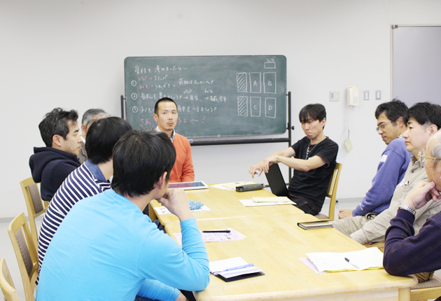 子どもたちのクッキング中、隣の部屋ではパパやおじいちゃん8人が参加して、セミナーが開かれていた。 講師はNPO法人ファザーリングジャパン(安藤哲也代表)東海の柴田俊さん。「父親であることを楽しもう」をモットーとする同法人の一員として、父親...