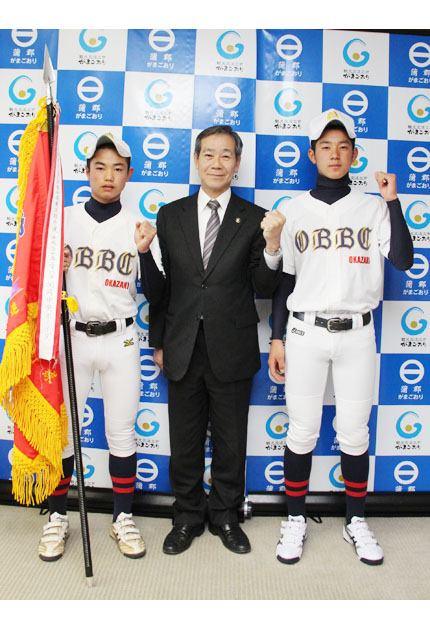 岡崎中央ボーイズの一員として第45回日本少年野球春季全国大会に出場を決めた蒲郡市の荒島竜太君(14)と洞田大翔君(同)は24日、蒲郡市役所で稲葉正吉市長に意気込みを語った。 蒲郡中学2年の荒島君は投手で、得意はストレート。「初戦を勝って、...