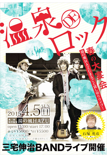 音楽と温泉を楽しむ一夜限定イベント「温泉DEロック」が4月5日午後5時から、新城市湯谷温泉の「湯の風HAZU」で開かれる。 三宅伸治さんを中心に高橋Jr知治さんと大島賢治さんで結成される「三宅伸治BAND」の演奏に加え、スペシャルゲストと...