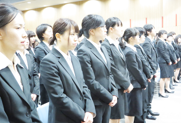 式に臨む新入生(保健センターで)
