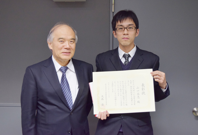 大西学長から賞状を贈られた山口昌志さん㊨