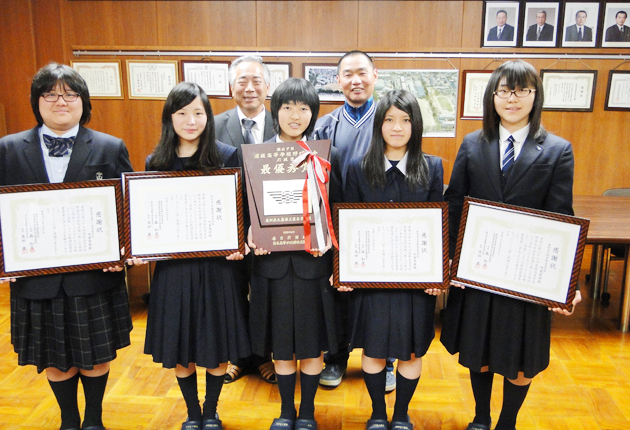 感謝状を受けた4校の吹奏楽部員(豊橋工業高校で)