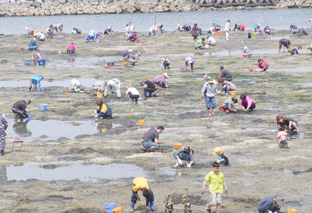 旬のアサリを採る多くの客でにぎわう