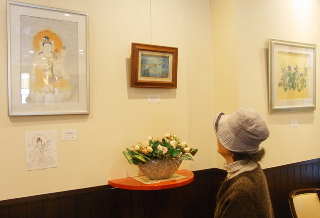 日本画の作品が並ぶ漣会作品展