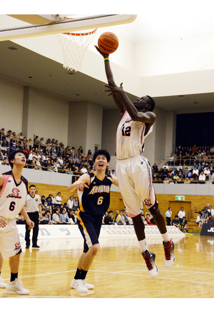 洛南戦・第4Q、⑫クルがシュートを決め勝利を引き寄せた(Ⓒ秋田魁新報社)