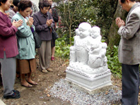 共同墓地づくりの活動を進めている「ひがんばなの会」(森永アサエ会長)は21日、蒲郡市と幡豆町にまたがる三ヶ根山頂の三ヶ根観音境内で会員が建立した童地蔵像の開眼法要を行った。会員ら10人が出席した。 今回建立した会員は高浜町青木の伊藤好江さ...