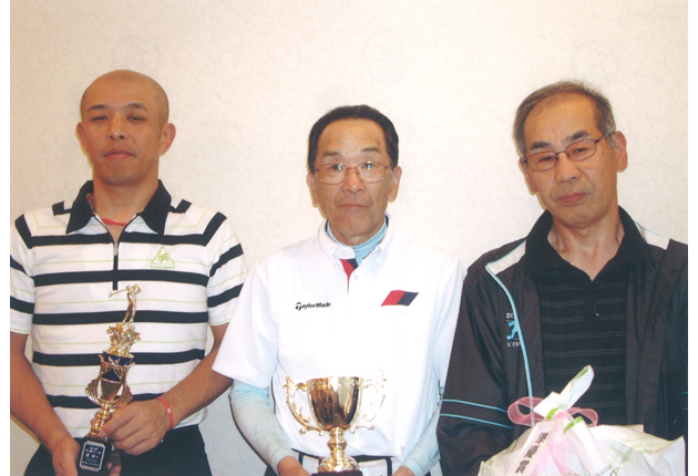 Aクラス優勝の佐藤謙二さん㊥、準優勝の伊藤澄男さん㊨、Bクラス優勝の森道徳さん㊧