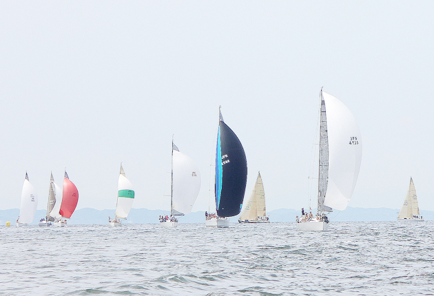 西浦半島沖のマークを折り返し、風をはらんで疾走する出場艇