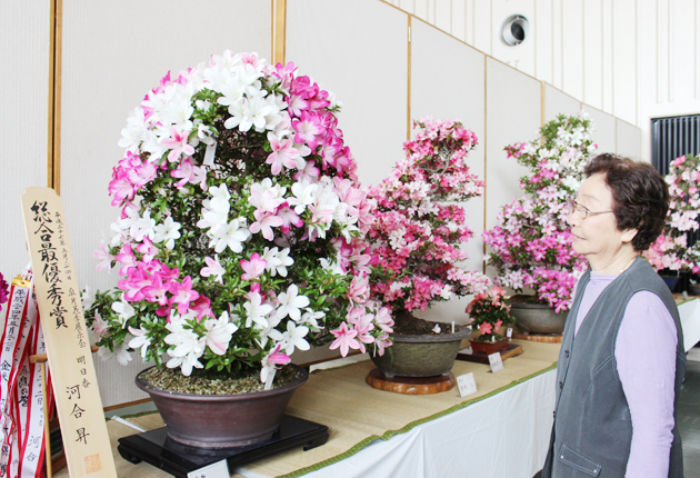 田原市民の文化振興を目的とした春の文協まつり(田原市文化協会主催)で、第41回さつき展が開かれた。 田原盆栽クラブさつき愛好会(大久保博会長)会員85作品の中から、最優秀賞にあたる総合優勝(部門=銘花・銘木の部)に河合昇さん(65)=田原...