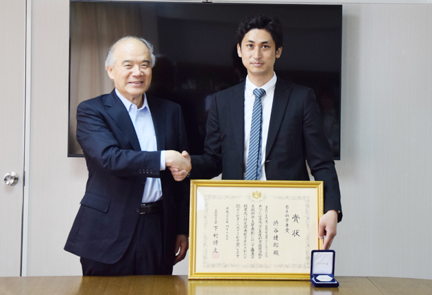 渋谷達郎さん㊨と大西隆豊橋技術科学大学学長