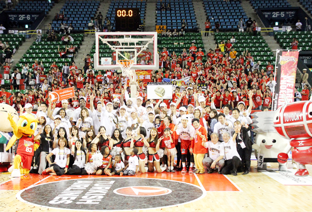 4季ぶり3回目のリーグ優勝を喜ぶフェニックスの選手とスタッフ