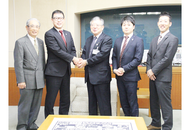 大河チェアマン(左から2人目)が佐原市長を表敬訪問