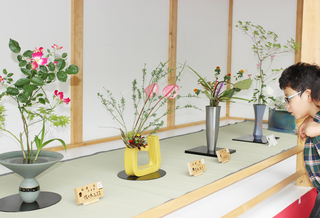 献花の儀を行った華道家元池坊豊橋支部の生花展示