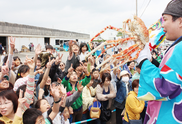会場あふれる笑顔/形原漁港で恒例水産祭