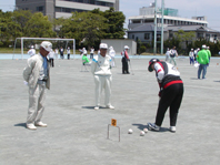 約400人が参加し行われた三遠南信スポーツ交流事業ゲートボール大会(豊橋市陸上競技場で)