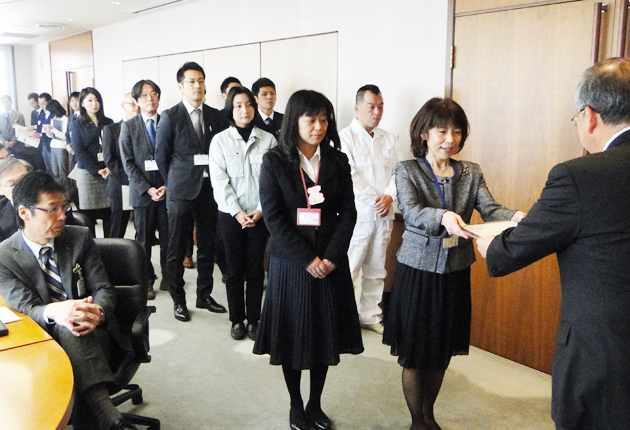 佐原市長から職員に感謝状を贈呈(豊橋市役所で)