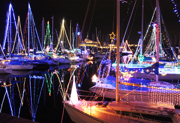 電飾を施したヨットが浮かぶラグナマリーナ(蒲郡市海陽町で)