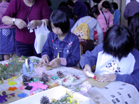 自然アートに参加する小学生