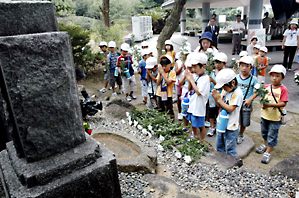 亡くなった動物たちの冥福を祈って手を合わせる園児たち(豊橋総合動植物公園で)