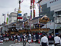 豪華な装飾の山車やみこしで知られる、蒲郡市三谷町の市指定無形文化財「三谷祭」が15日、同町一帯で始まった。 この日のハイライトは、山車4台と船形みこし1台、神楽1台が八剣神社前に勢ぞろいする「山車そろえ」。あいにくの雨模様のため山車に透明...