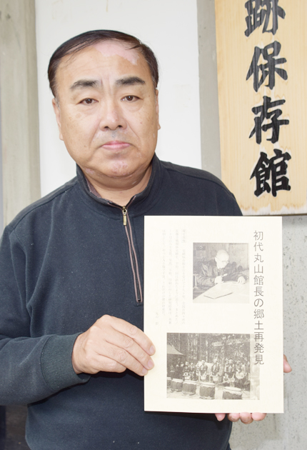 「初代丸山館長の郷土再発見」を手にする山内さん(長篠城址史跡保存館で)