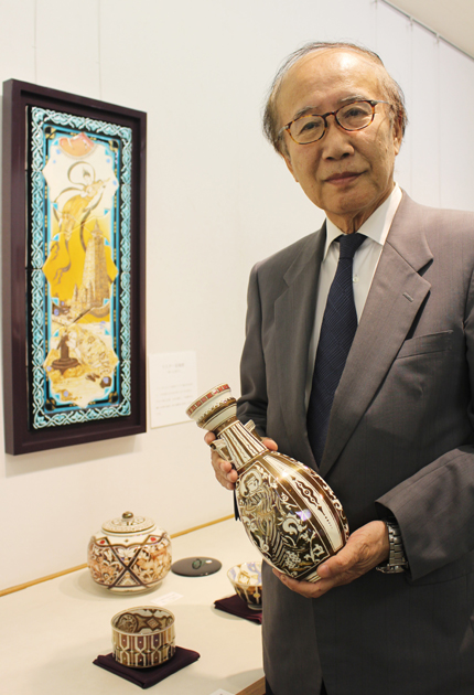 美しく輝く作品を披露する加藤さん(ほの国百貨店7階美術画廊で)