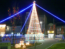輝く電飾が連夜人を引きつけるまちなかイルミネーション(田原市街地の中央広場で)