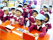 笑顔で年賀状をポストに投函する園児たち(豊橋郵便局提供)