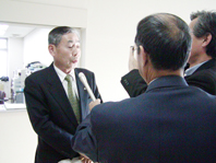議会を終えてテレビなどの取材に応じる宇都野町長