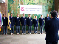中野市長から激励の言葉を受ける駅伝チームメンバー(豊川市役所で)