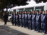出発式で整列する男子駅伝チーム(豊川工業高校で)