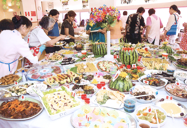 国際色豊かな料理を楽しむ会員ら