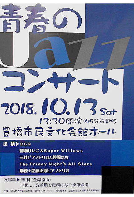 豊橋市民文化会館(市内向山大池町)の開館50周年を記念する「青春のジャズコンサート2018」が13日、文化会館ホールで開かれる。市文化振興財団の主催で、昨年に開催された「青春のポップコンサート」に続く第2弾だ。 曲目は、地元を中心としたア...