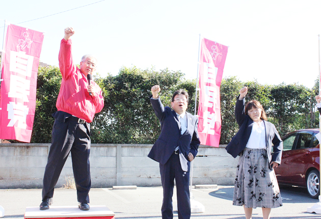 支援者250人と「がんばろう」/野中泰志氏が事務所開き/県議選