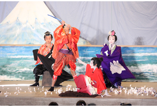 豊川市赤坂町の杉森八幡社境内にある「赤坂の舞台」で28日、昔ながらの農村歌舞伎を再現した伝統芸能公演があった。江戸末期から市内に伝わる「金沢歌舞伎」や、地元小学生らによる子ども歌舞伎、太鼓、万歳などが披露された。 メーンの歌舞伎公演は、一...
