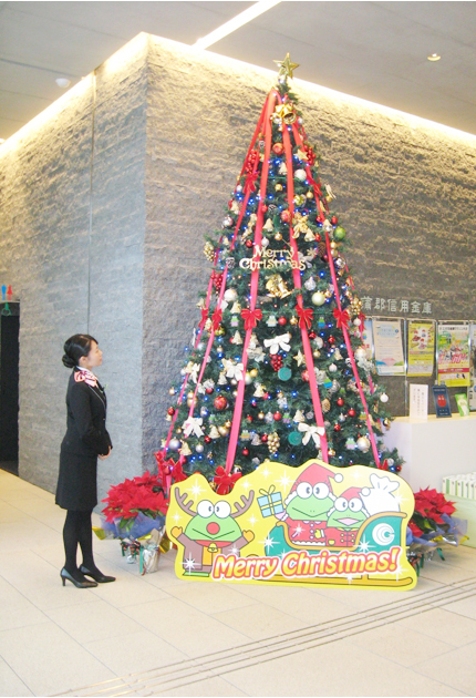 本店1階のクリスマスツリー(蒲郡信用金庫提供)