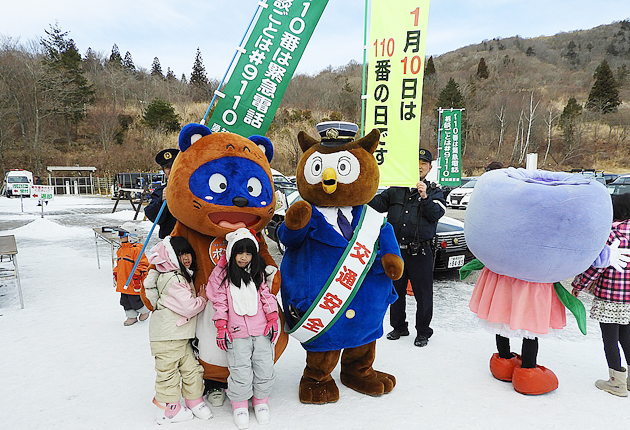 設楽署はこのほど、豊根村の茶臼山高原スキー場で「110番の日」に関するキャンペーン活動を行った。 参加したのは署員8人。暴力やいじめに関する相談ダイヤルの番号が書かれた啓発品を配布するとともに、県警のシンボルマスコットの「コノハけいぶ」や...