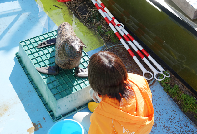 人気者になってね―。蒲郡市竹島町の竹島水族館(小林龍二館長)で、オスとメスのオットセイ各1頭が18日、ステージに初デビューした。 オスのオットセイは登場からハイテンション。エサの魚をトレーナーの手から口で受け取ってのみ込んだのもつかの間、...