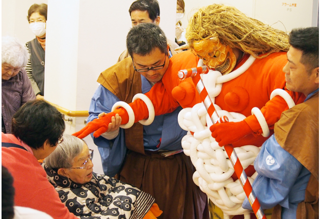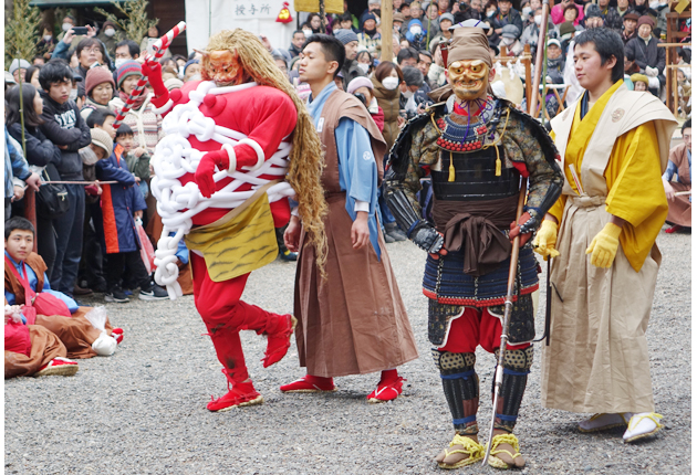 天狗を挑発する赤鬼(安久美神戸神明社で)
