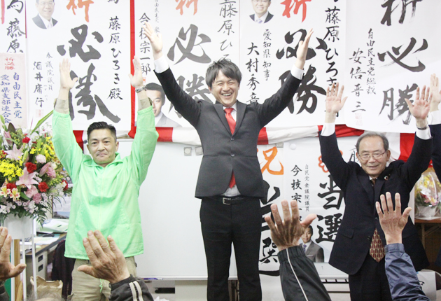 豊川市内の事務所では午後5時過ぎ、「無投票当選」が決まると、集まった支援者から歓声が上がり、喜びに包まれた。 山脇実豊川市長と今枝宗一郎衆議院議員も駆けつけ、「豊川市のために一緒にがんばろう」とエールを送り、3回目の当選を祝った。支援者か...